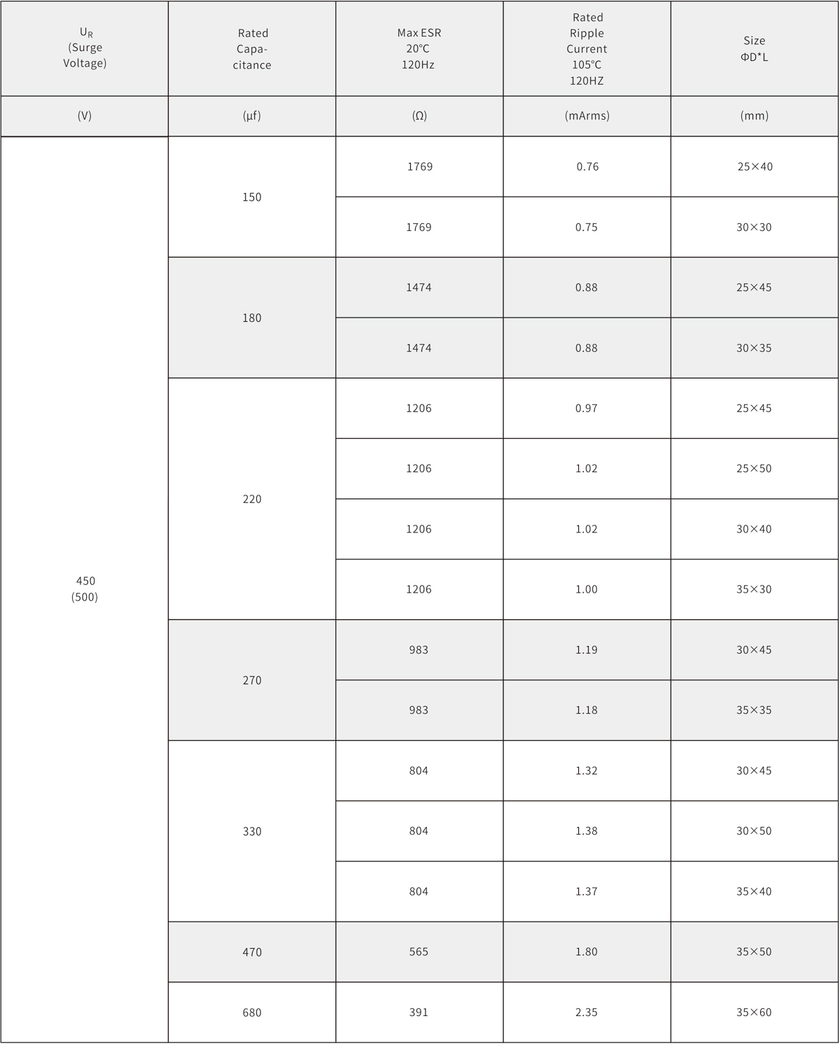 2000h at 105℃;Standard 105℃