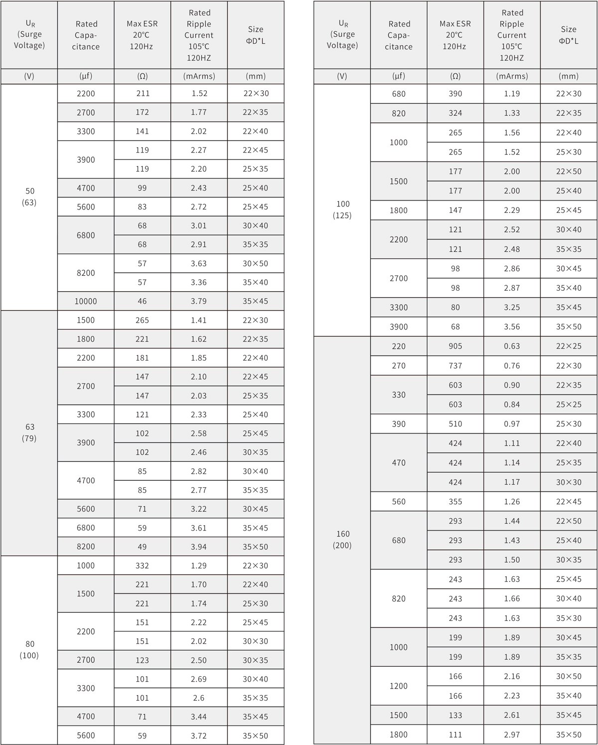 5000h at 105℃